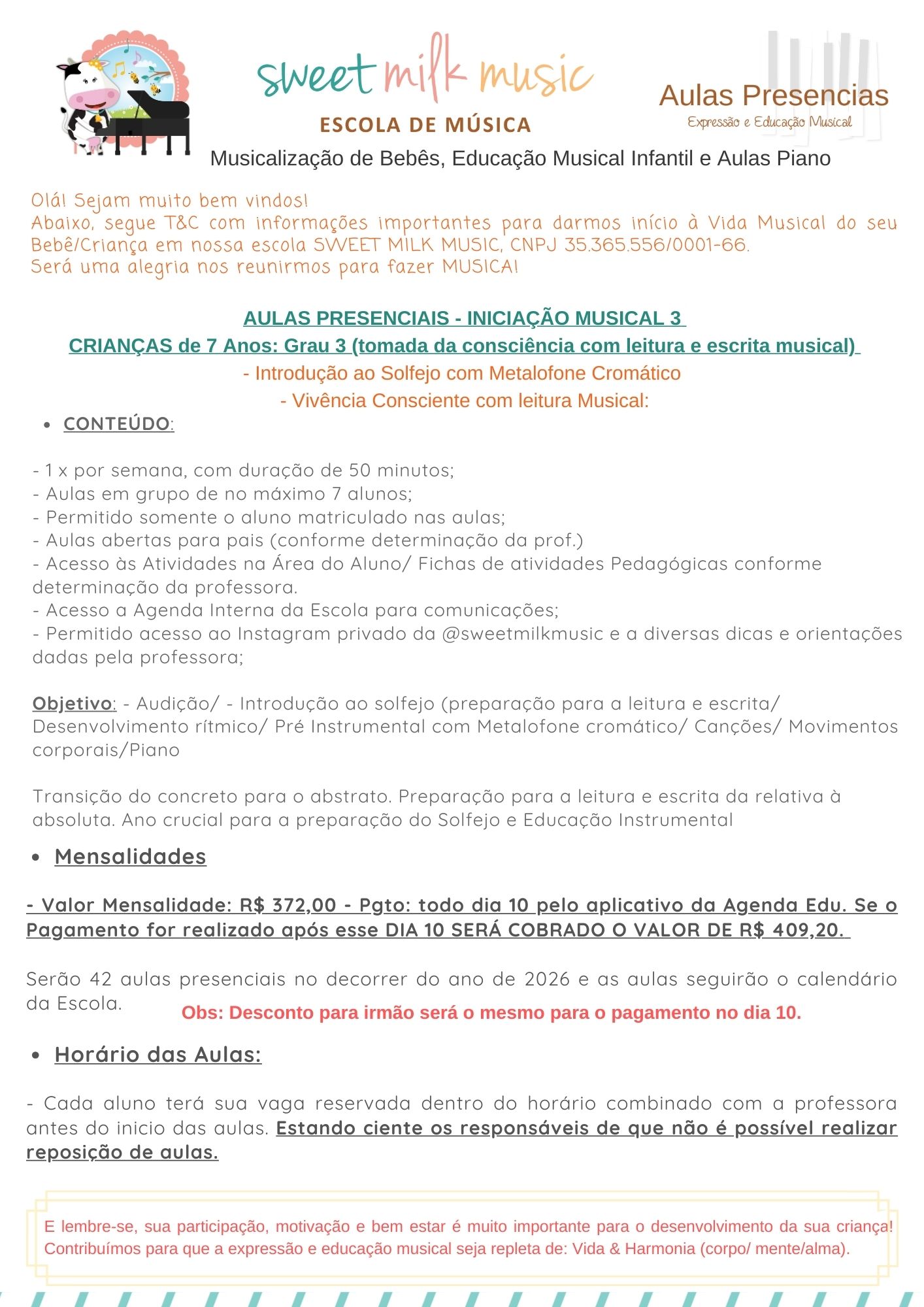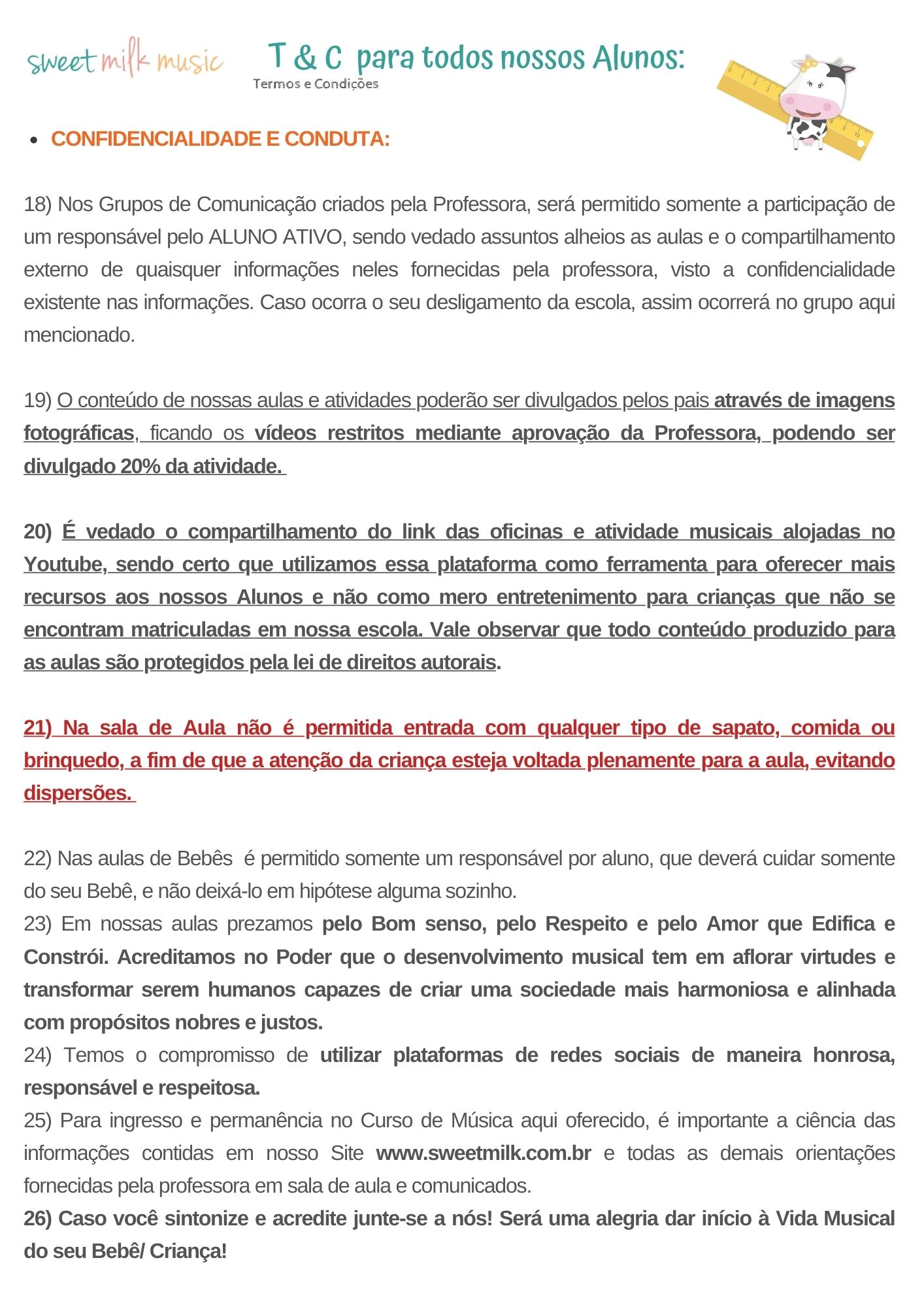 Abaixo, segue FORMULÁRIO de INSCRIÇÃO e T&C com informações importantes para darmos início à Vida Musical do seu Bebê/Criança aqui na SWEET MILK MUSIC, CNPJ 35.365.556/0001-66.