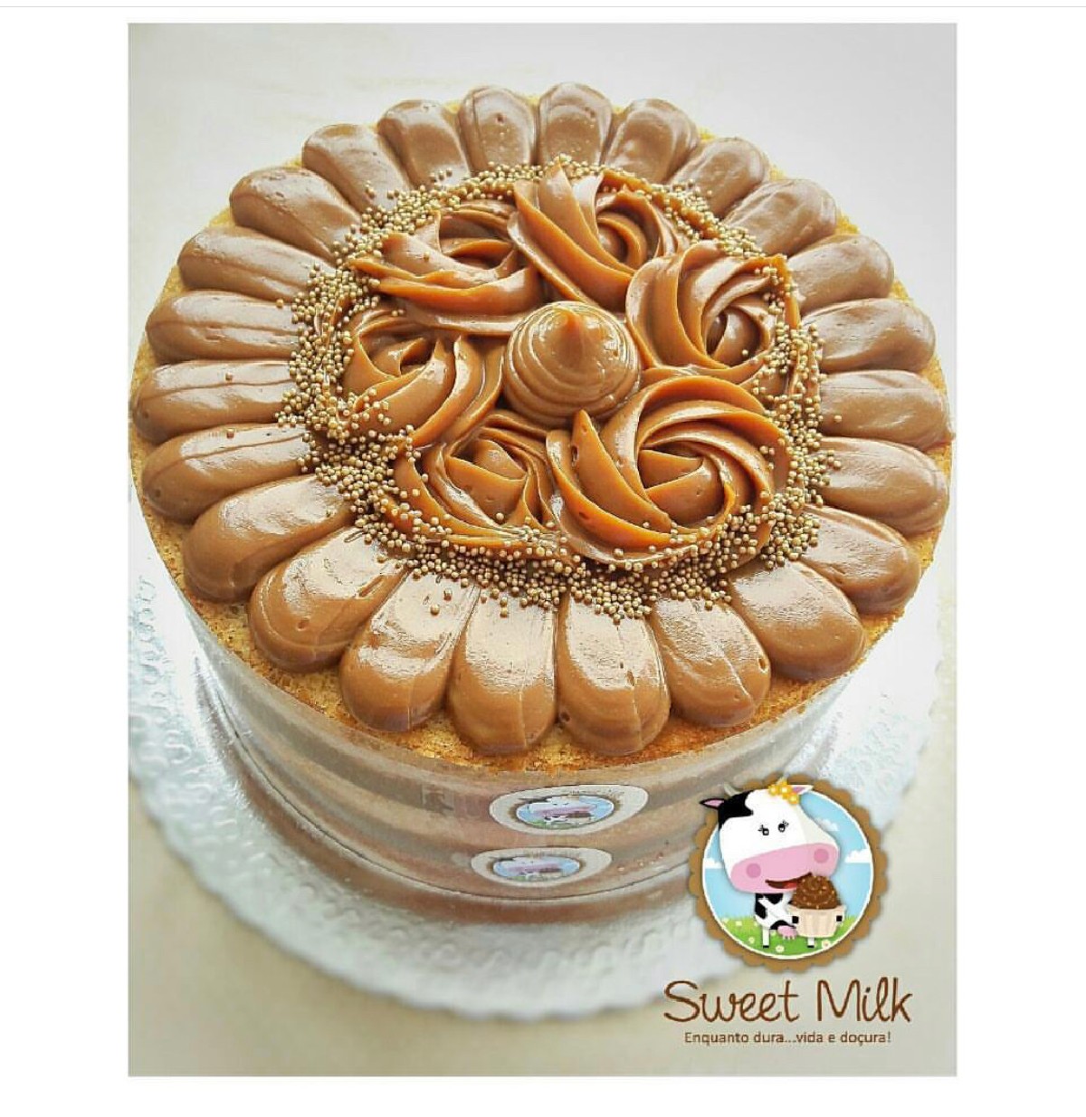 O acetato transparente que o envolve, possibilita que o Bolo fique Bem Molhadinho e Bem Recheado...há e acompanha um laçarote bem lindo também!