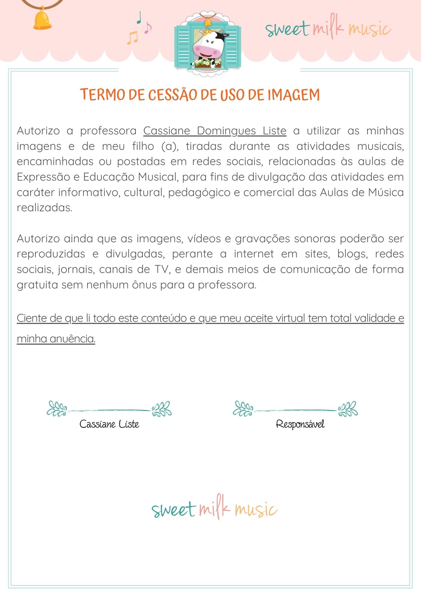 Abaixo, segue FORMULÁRIO de REMATRÍCUILA e T&C com informações importantes para darmos início à Vida Musical do seu Bebê/Criança aqui na SWEET MILK MUSIC, CNPJ 35.365.556/0001-66.